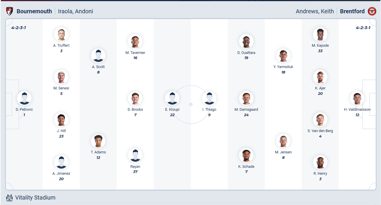 Bournemouth đã chơi tốt hơn thời gian gần đây so với chuôi toàn hòa và thua trước đó, họ bất bại 5 vòng gần nhất và đang đứng thứ 9 trên bảng xếp hạng. Vấn đề với các cầu thủ Bournemouth là họ để hòa quá nhiều, để có thể cải thiện thứ hạng thì đội bóng của HLV Iraiola cần thắng nhiều hơn. Họ đặt mục tiêu làm điều đó ở vòng đấu thứ 29 này. Tuy nhiên đối thủ Brentford đang có phong độ khá cao và có đội hình không hề yếu nên mục 3 điểm của Bournemouth không hề dễ. Nhiều khả năng đội bóng chủ nhà sẽ chỉ có thể giành được kết quả hòa.