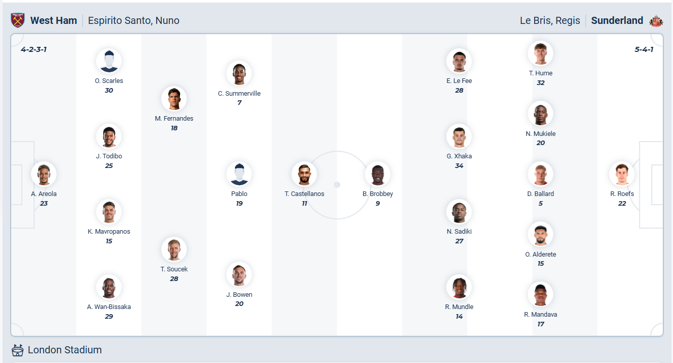 West Ham đã chấm dứt chuỗi trận không thắng của mình ở vòng đấu trước bằng 3 điểm đầy cảm xúc trên sân Tottenham, chiến thắng đó chưa thể giúp đội bóng của HLV Nuno Santo cài thiện thứ hạng bởi họ vẫn đứng thứ 18. Với khoảng cách 4 điểm với đội đứng trên thì các cầu thủ West Ham còn nhiều việc phải làm, họ muốn có thêm một chiến thắng nữa ở vòng đấu thứ 23 này. Tuy nhiên trước một Sunderland chơi rất ổn mùa này thì khả năng West Ham sẽ lại phải nhận một thất bại nữa, chiến thắng ở vòng đấu trước có thể chỉ là một khoảnh khắc lóa sáng.